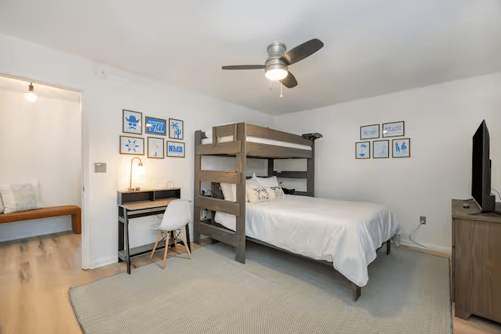 1 Queen bed, 1 twin bunk